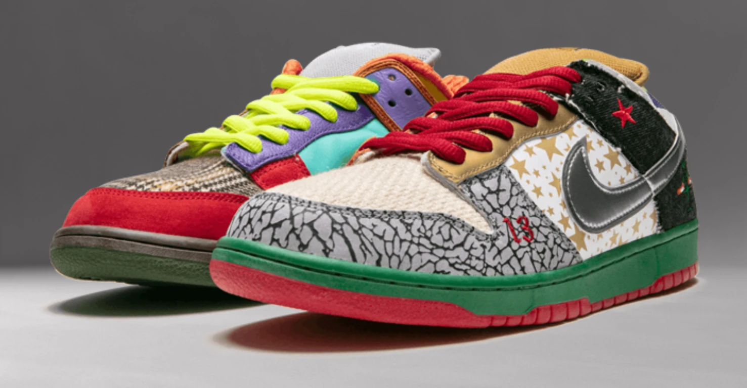 - هنر مفهومی پوشیدنی: مدلهایی مانند Nike SB Dunk ‘What The Dunk’ با ترکیبی هنرمندانه از معروفترین کفشهای دانک، به یک اثر هنری مفهومی تبدیل شدهاند. در این حالت، ارزش بر اساس پیچیدگی طراحی و اصالت هنری تعیین میشود.