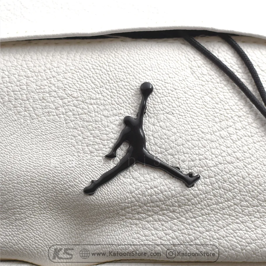• لوگوی جامپمن (Jumpman): لوگوی نمادین بسکتبالیست در حال پرش، به صورت برجسته یا گلدوزی‌شده روی پنل اصلی کیف قرار گرفته است. این لوگو میراث و هویت برند را به نمایش می‌گذارد و نقطه‌ی تمرکز طراحی محسوب می‌شود.