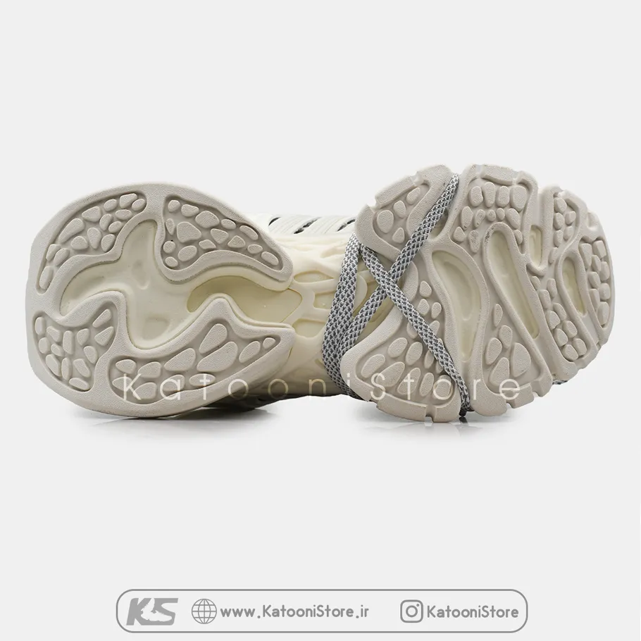 بندهای ضخیم و طنابیشکل به رنگ طوسی روشن، علاوه بر زیبایی، فیت پای شما را ایمن و محکم نگه میدارند. این جزئیات، حس نوستالژیک کفشهای Daddy Shoe دههی ۹۰ را زنده میکنند. - جزئیات سهبعدی:
