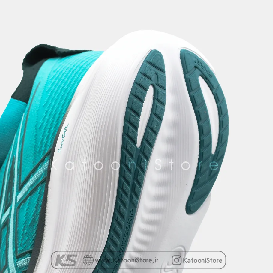 در اولین نگاه به اسیکس ژل نیمباس27، ترکیب رنگی این کفش خیرهکننده است و جلب توجه میکند. رویه این کفش، با طیفهای مختلفی از آبی فیروزهای و سبز، حس حرکت موج و رویش گیاه را القا میکند. رویه این کتونی از مش ژاکارد مهندسیشده ساخته شده که نه تنها بافتی نرم و راحت دارد، بلکه تهویهای بینظیر را برای پا فراهم میکند. حس لمس این رویه، شبیه به یک جوراب نرم است که پا را بدون ایجاد فشار، در آغوش میگیرد. جزئیات سبز رنگ که یادآور جنگل است، در کنار این آبی اقیانوسی، هماهنگی بینظیری را ایجاد کرده است. نکته مهم و تحسینبرانگیز اینجاست که حداقل ۷۵٪ از مواد به کار رفته در رویه، بازیافتی هستند؛ این یعنی آسیکس در عین حال که به فکر راحتی شماست، به محیط زیست هم اهمیت میدهد. همچنین، بافت خاص رویه به گونهای طراحی شده که پای شما را به خوبی در جای خود نگه داشته و در حرکات جانبی ثبات لازم را به آن میبخشد.