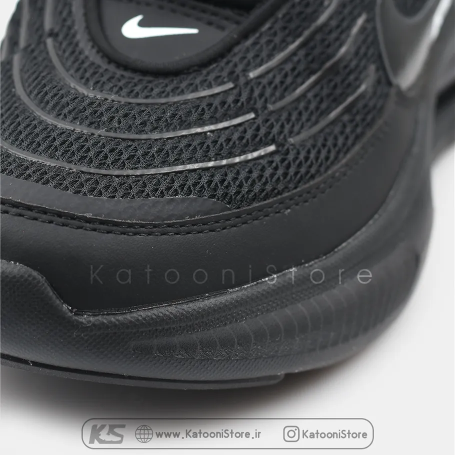 ظاهر یک‌دست مشکی در نایک ایرمکس ولوسیتی، آن را به مدلی شیک، مینیمال و همه‌پسند تبدیل کرده است. این رنگ به‌راحتی با انواع استایل‌های خیابانی، اسپرت یا حتی پوشش‌های نیمه‌رسمی هماهنگ می‌شود. رویه با ترکیب مش بافت‌دار و لایه‌های مصنوعی، علاوه بر زیبایی، به کفش ساختاری مستحکم می‌دهد. لوگوی نمادین نایک در کناره قرار گرفته و طراحی آج‌دار زیره، شخصیت اسپرت و عملکردی کفش را برجسته می‌کند.