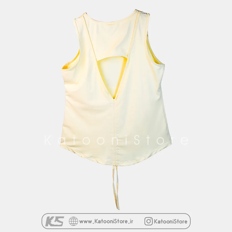 در نمای جلو، این محصول با طراحی مینیمال و یقه گرد، ظاهری ساده و شیک دارد که بهراحتی با انواع شلوارهای ورزشی، لگ، شرتک و حتی شلوارهای جین قابل ست شدن است. این سادگی در بخش جلو باعث میشود تمرکز اصلی روی طراحی خلاقانه پشت لباس حفظ شود.