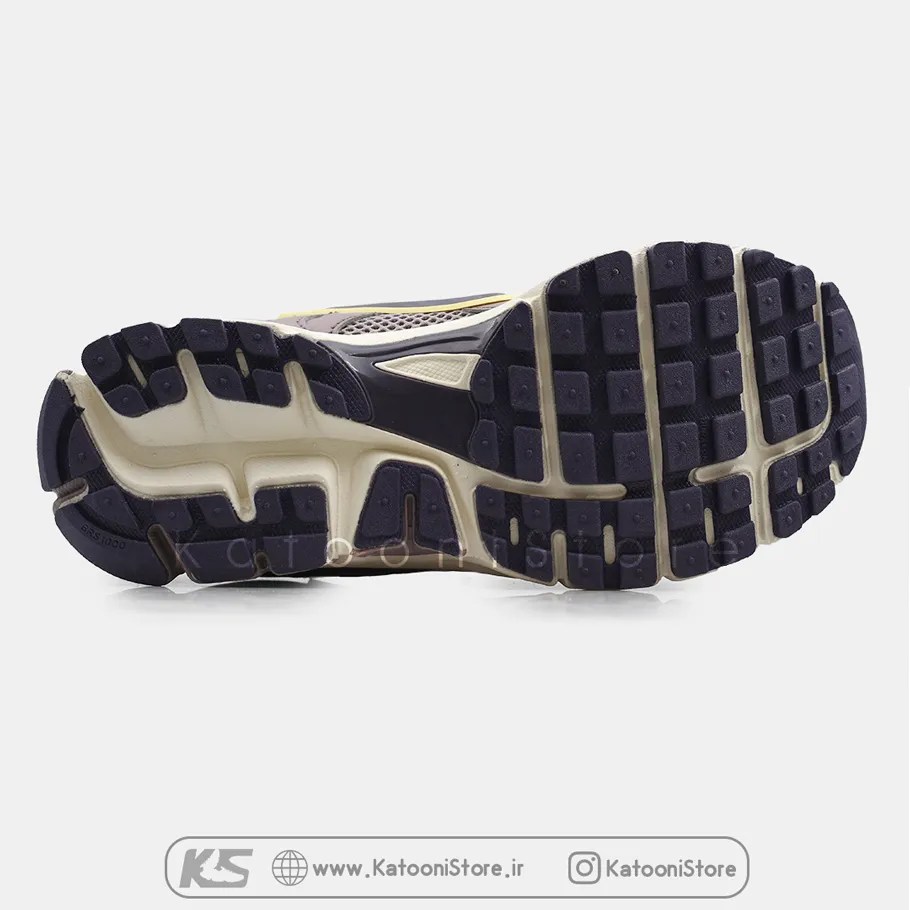 زیره کفش هم با دو رنگ طراحی شده است: بخش بیرونی بنفش بادمجونی است که حس جسارت و تمایز را ایجاد میکند و بخش میانی کرم رنگ است تا تضاد رنگی ملایم و هماهنگی کلی کفش حفظ شود. این هارمونی رنگی باعث میشود کفش به راحتی با انواع لباسهای اسپرت و روزمره ست شود.