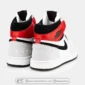 همان طور که از اسم کفش هم مشخص می باشد رنگ خاکستری به کار رفته در این نسخه نسبت به دیگر نسخه ها کم رنگ تر می باشد و کنار هم قرار گرفتن این رنگ در کنار یک رنگ قرمز براق و به اصطلاح جیغ تر، طراحی چشم نوازی را تشکیل داده که کم تر این سبک ترکیب را در دیگر نسخه های ایر جردن 1 ساق دار دیده اید.