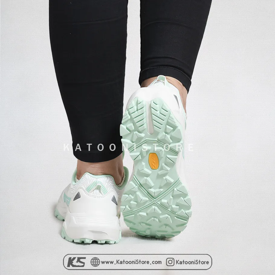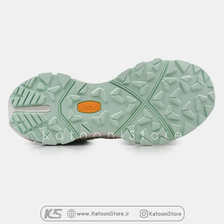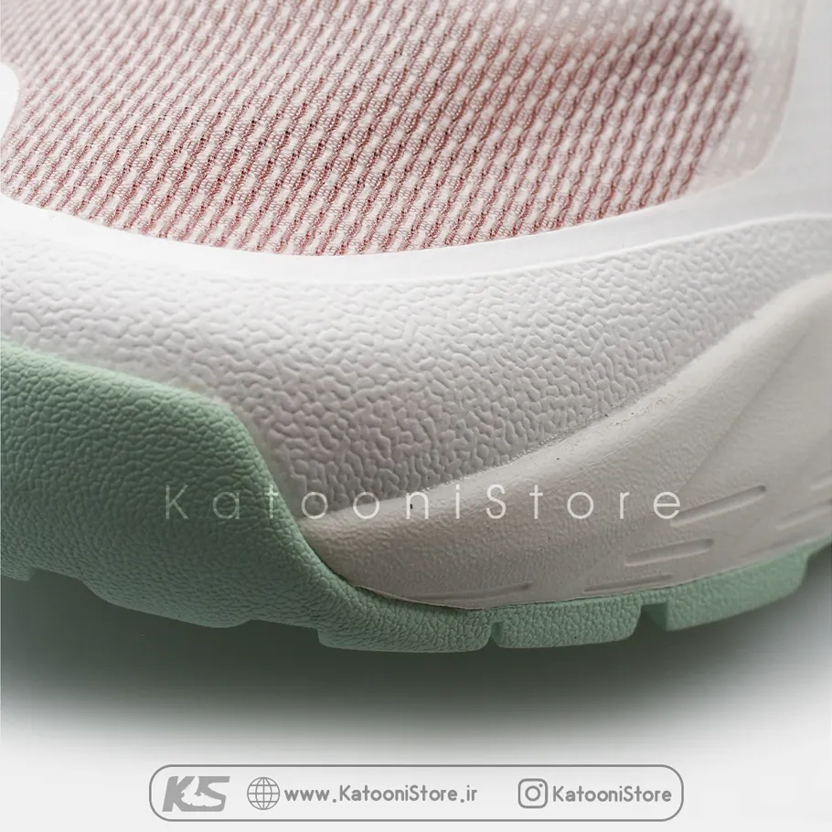 برای محافظت بیشتر، قسمت جلویی از سینتتیک مقاوم ساخته شده است. این بخش نه تنها دوام کفش را افزایش میدهد، بلکه از ضربههای احتمالی و فشار وارده بر انگشتان پا جلوگیری میکند. طراحی این لایه با رنگ سبز روشن به همراه رنگ سفید تور، جلوهای زنانه و شاداب به کفش میبخشد.