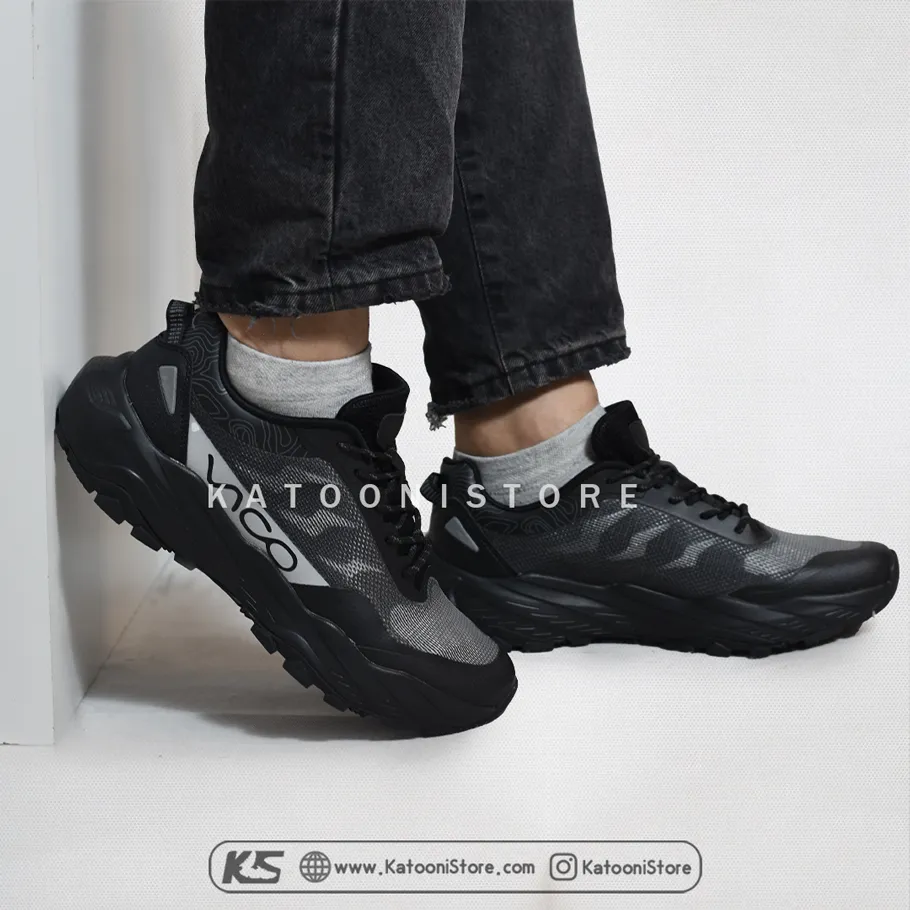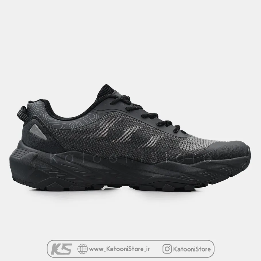زیره EVA در میانه کفش، راحتی و ضربهگیری مطلوبی ایجاد میکند و زیره خارجی از جنس رابر با رنگ مشکی مات، علاوه بر چسبندگی بیشتر، کیفیت فنی کفش را نیز ارتقا میدهد. طراحی داخلی کفش و زبانه نیز به رنگ مشکی اجرا شده تا ظاهر کفش از هر زاویه کاملاً هماهنگ و یکدست به نظر برسد.