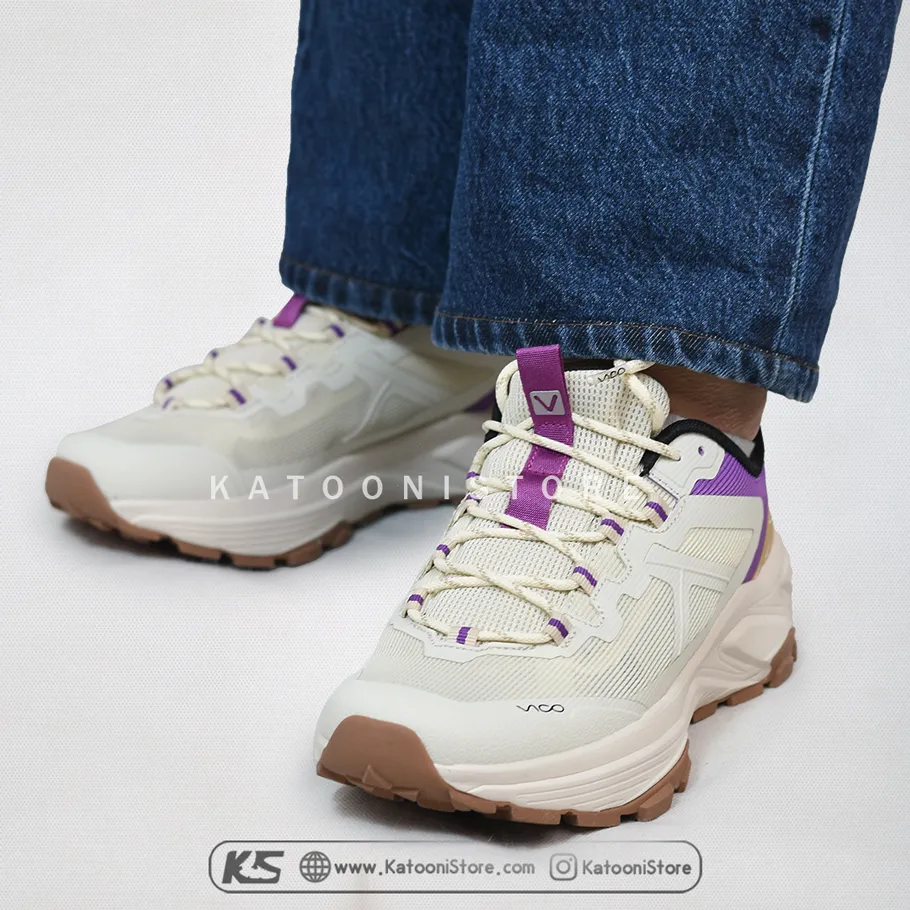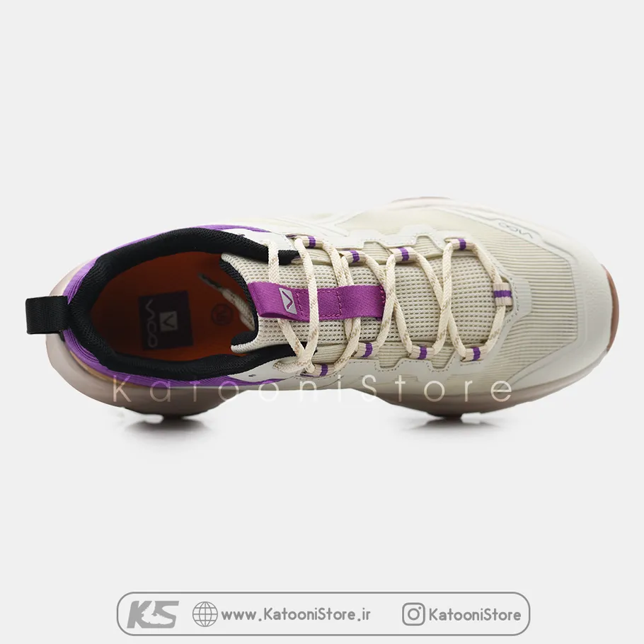 در نگاه اول، ترکیب رنگ کرم در بخش رویه و بنفش در قسمت پشتی و کناری، هویتی خاص و دخترانه به این کفش داده است. رویه از پارچه مش (Mesh) ساخته شده که کاملاً تنفسی است و اجازه میدهد هوای تازه آزادانه داخل کفش جریان پیدا کند. این ویژگی، کفش را برای استفاده طولانیمدت و فعالیتهای پیادهروی بسیار مناسب میکند.