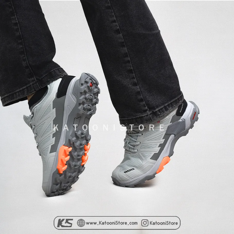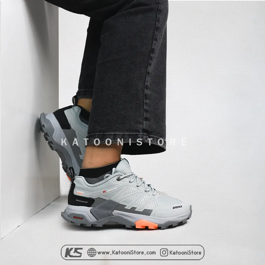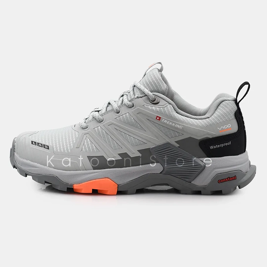 اولین چیزی که در این مدل به چشم میآید، ترکیب رنگی هوشمندانه و متفاوت آن است. رویه کفش در یک طیف یکدست از خاکستری روشن قرار دارد که حس مدرن بودن و استحکام را منتقل میکند. این رنگ خنثی، بوم مناسبی برای نمایش جزئیات خیرهکننده نارنجی است که در قسمتهای کلیدی زیره میانی و زیره خارجی به چشم میخورد. این رنگ پرانرژی، به کفش هویتی پویا و جذاب میبخشد و آن را از سایر کفشهای ترکینگ متمایز میکند.