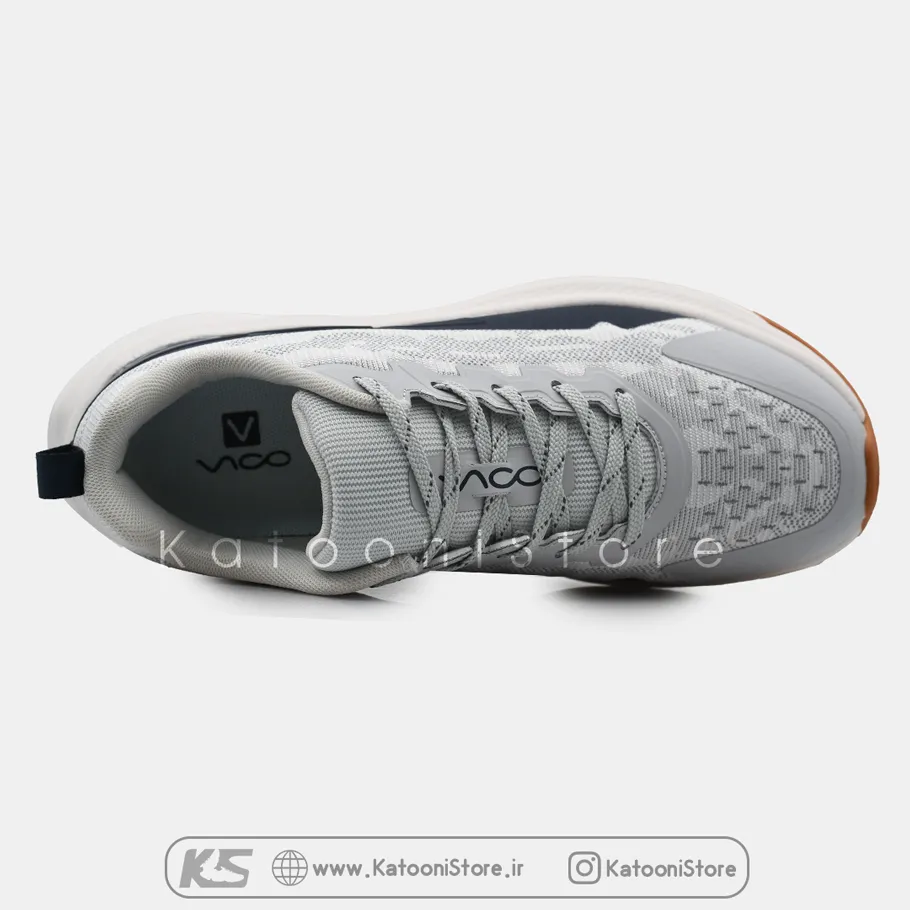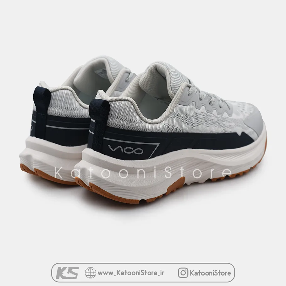 نوار پهن سورمهای در بخش میانی رویه، تضادی چشمنواز با رنگ روشن ایجاد کرده و فرم هندسی کفش را برجسته میسازد. این نوار که از جنس سنتتیک است، در قسمت حساس اتصال رویه به زیره میانی قرار داده شده تا کفش در دراز مدت باز نشود و همینطور که حمایت بیشتری از قوس و کف پا داشته باشد. لوگوی Vico نیز روی زبانه و در کناره پاشنه دیده میشود که یادآور اورجینال بودن این کالاست. بهصورت محو روی بخش مشبک دیده میشود. وجود الیاف مصنوعی در قسمت زبانه و بندکشی نیز باعث میشود تا کفش خیلی خوب و محکم روی پا فیت شود. دور مچ کفش با پارچهی مش تنفسپذیر پوشانده شده تا نرمی و راحتی دور قوزک پا فراهم شود.
