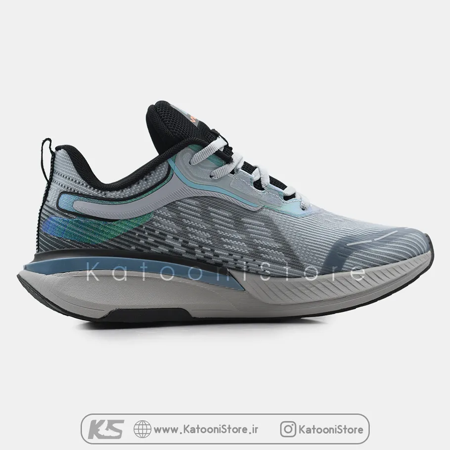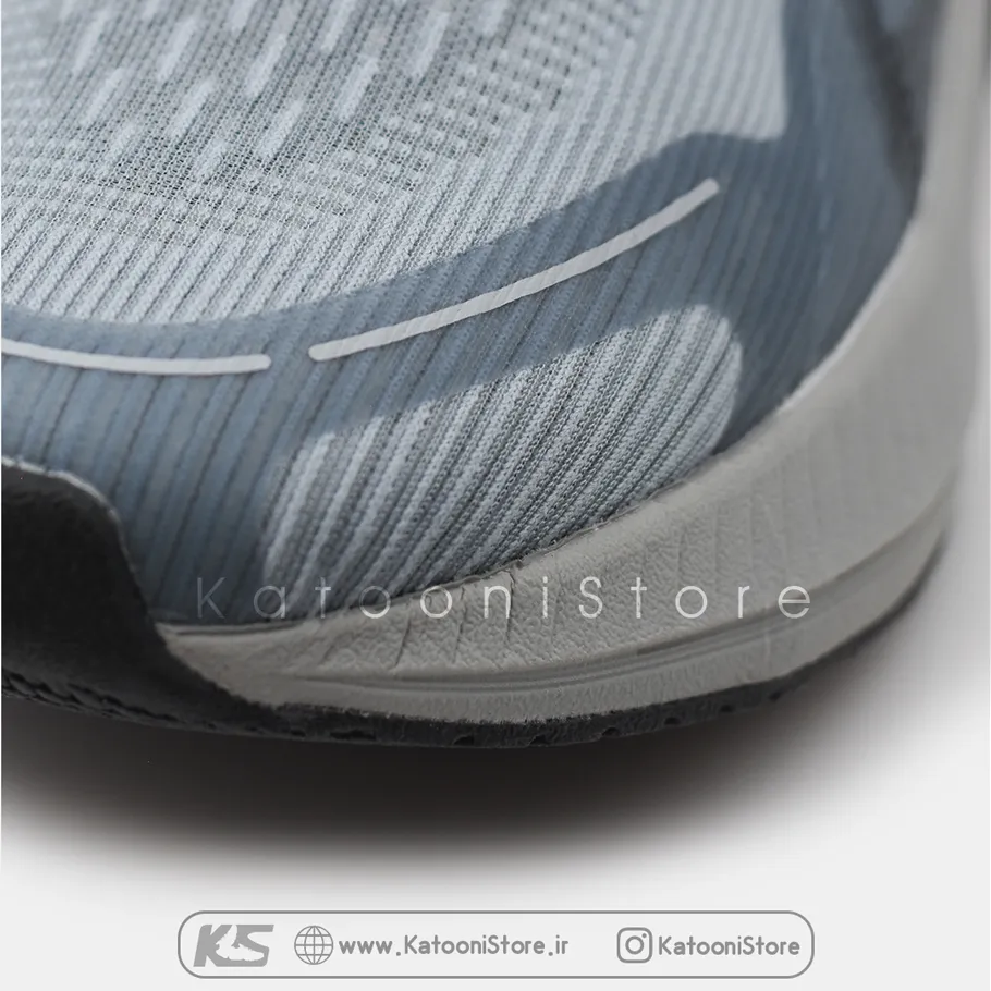 - ساختار مش مشبک (Engineered Mesh): رویه کفش از یک توری بافته شده مش (Engineered Mesh) با طیف رنگ طوسی ساخته شده که ساختاری ظریف، اما محکم دارد. این نوع مش به طور شگفتانگیزی سبک و کاملاً تنفسپذیر است. این ویژگی باعث میشود پا در طول دویدنهای طولانی و فشرده، خنک و خشک بماند و حسی شبیه به “پوشیدن یک پوست دوم” را به شما القا کند.